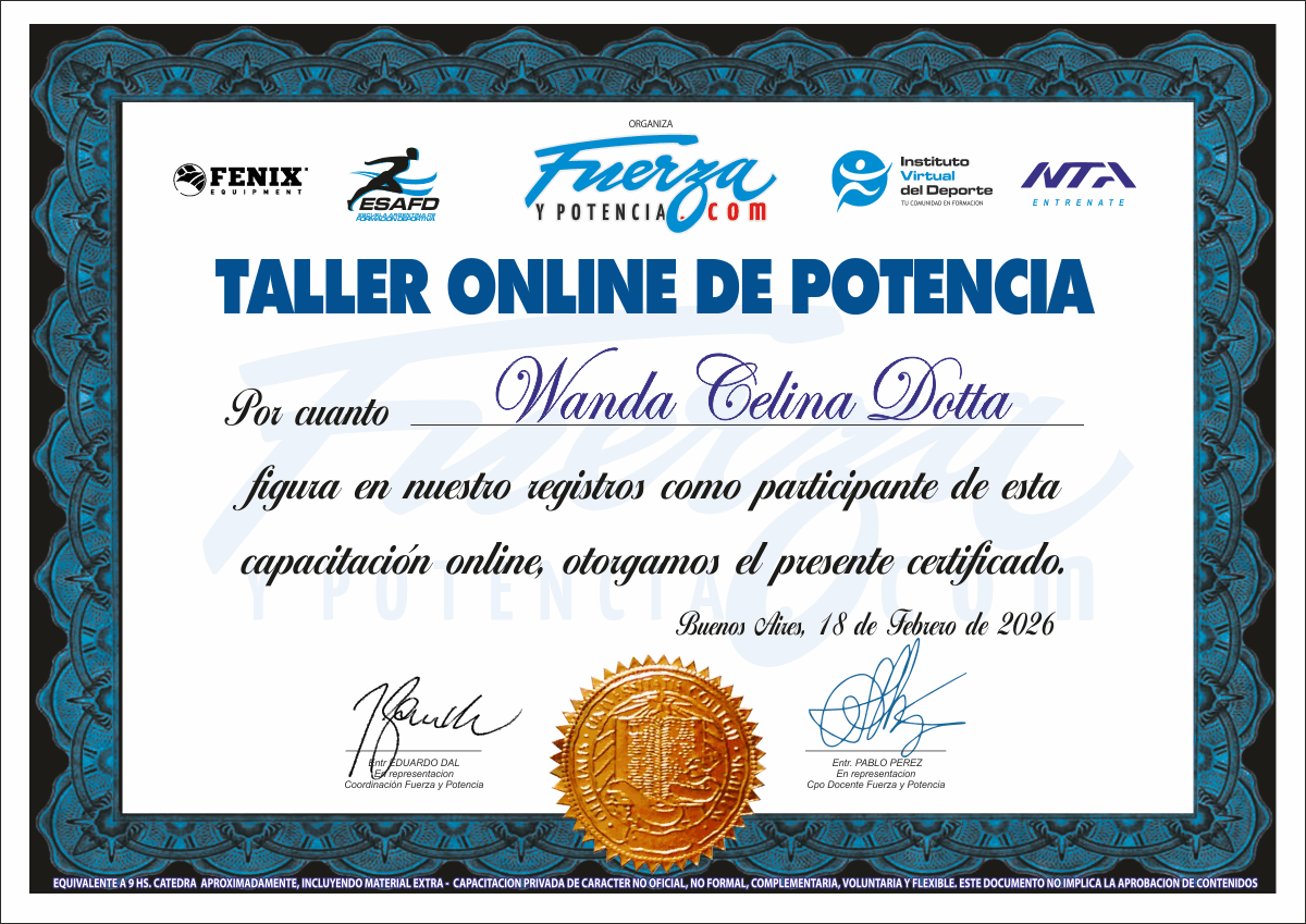 - Certificado de Participación Grupo Fuerza y Potencia+ Instituto Virtual del Deporte + Escuela Argentina de Formación Deportiva (e/f)